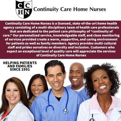 Continuity Care Home Nurses offer 24/7 or part-time care for after-surgery or activities of daily living care. They are bonded and insured with professional staffing. For more information please download their flyer below.